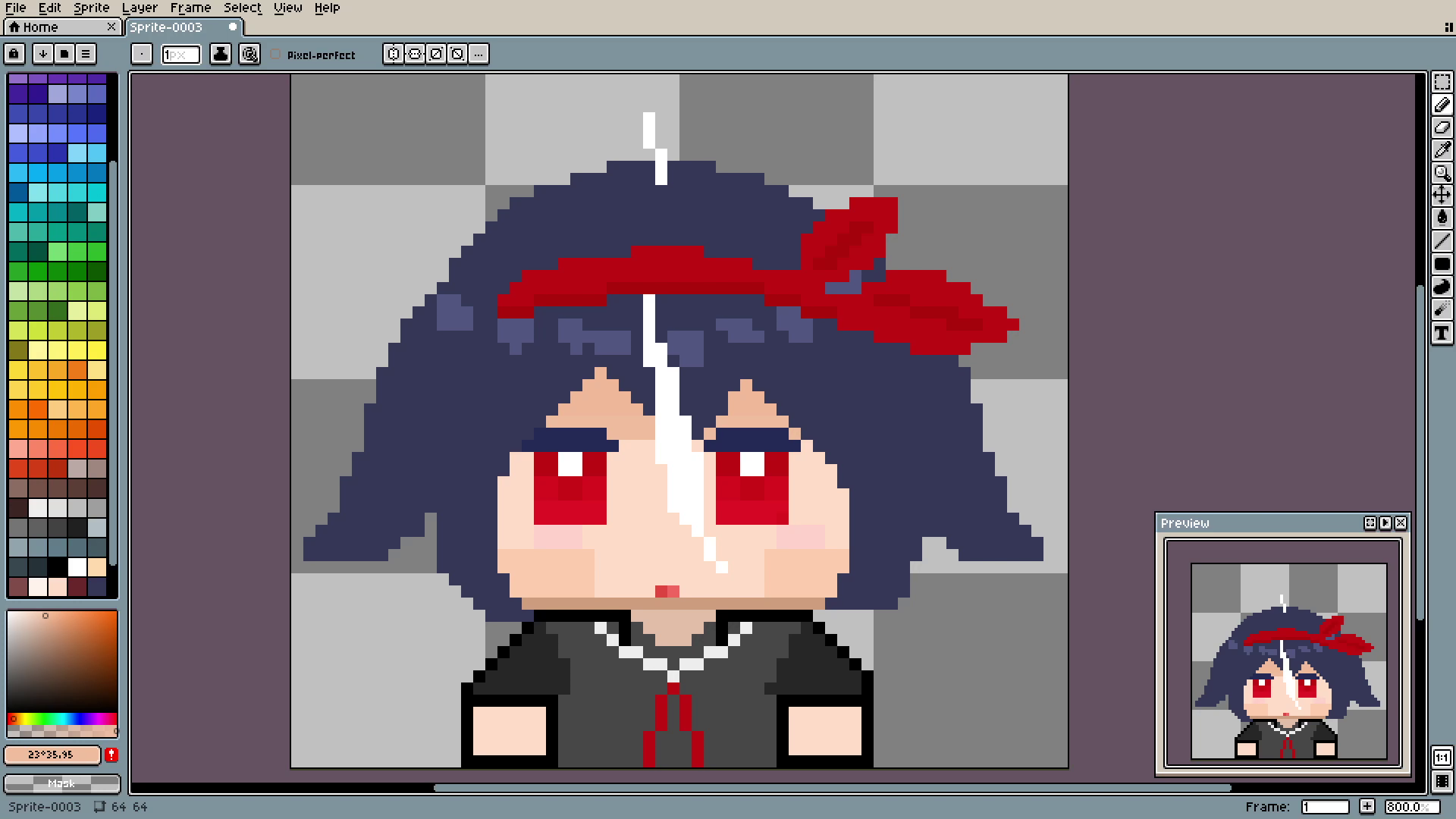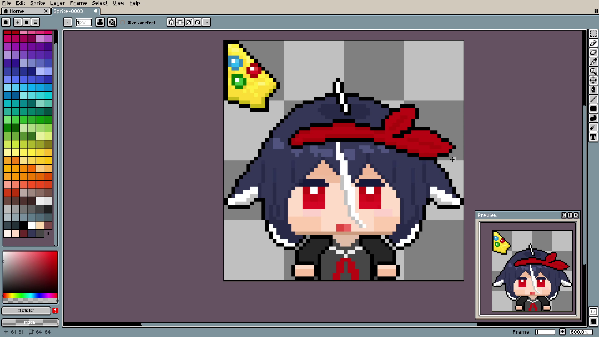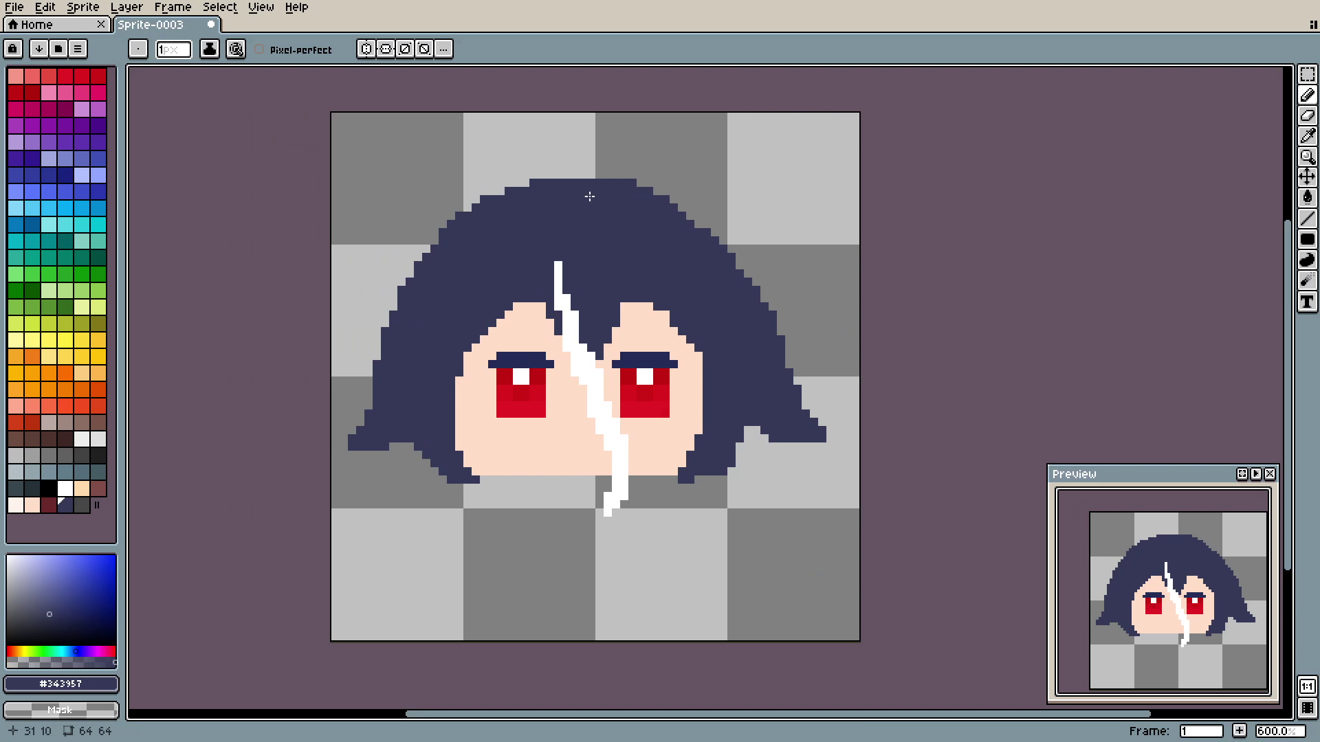 And the outline. See? In 3 simple steps we went from plain spot to decent-looking hair. By the way, if you are using Aseprite like me, you can auto-outline things using shift+o.