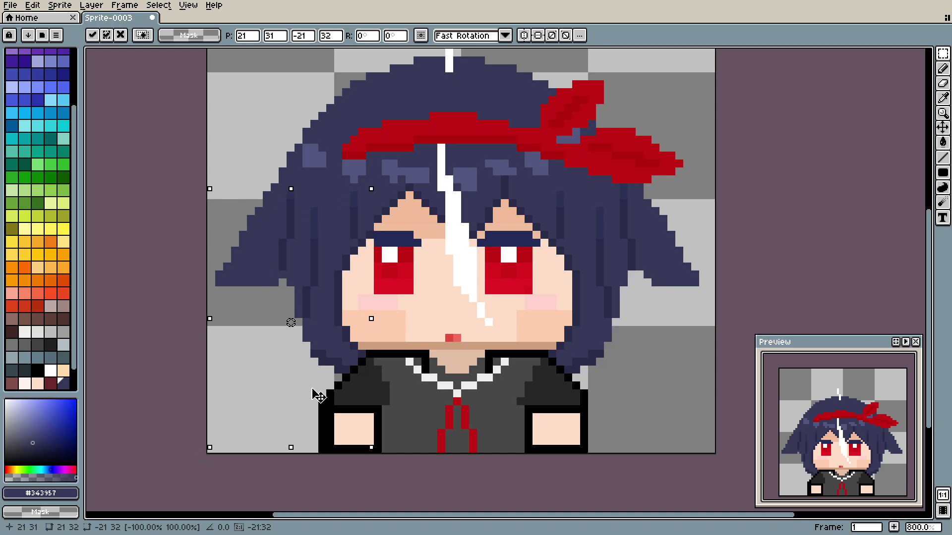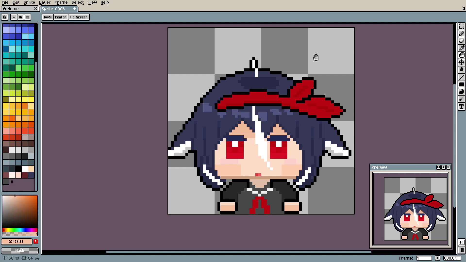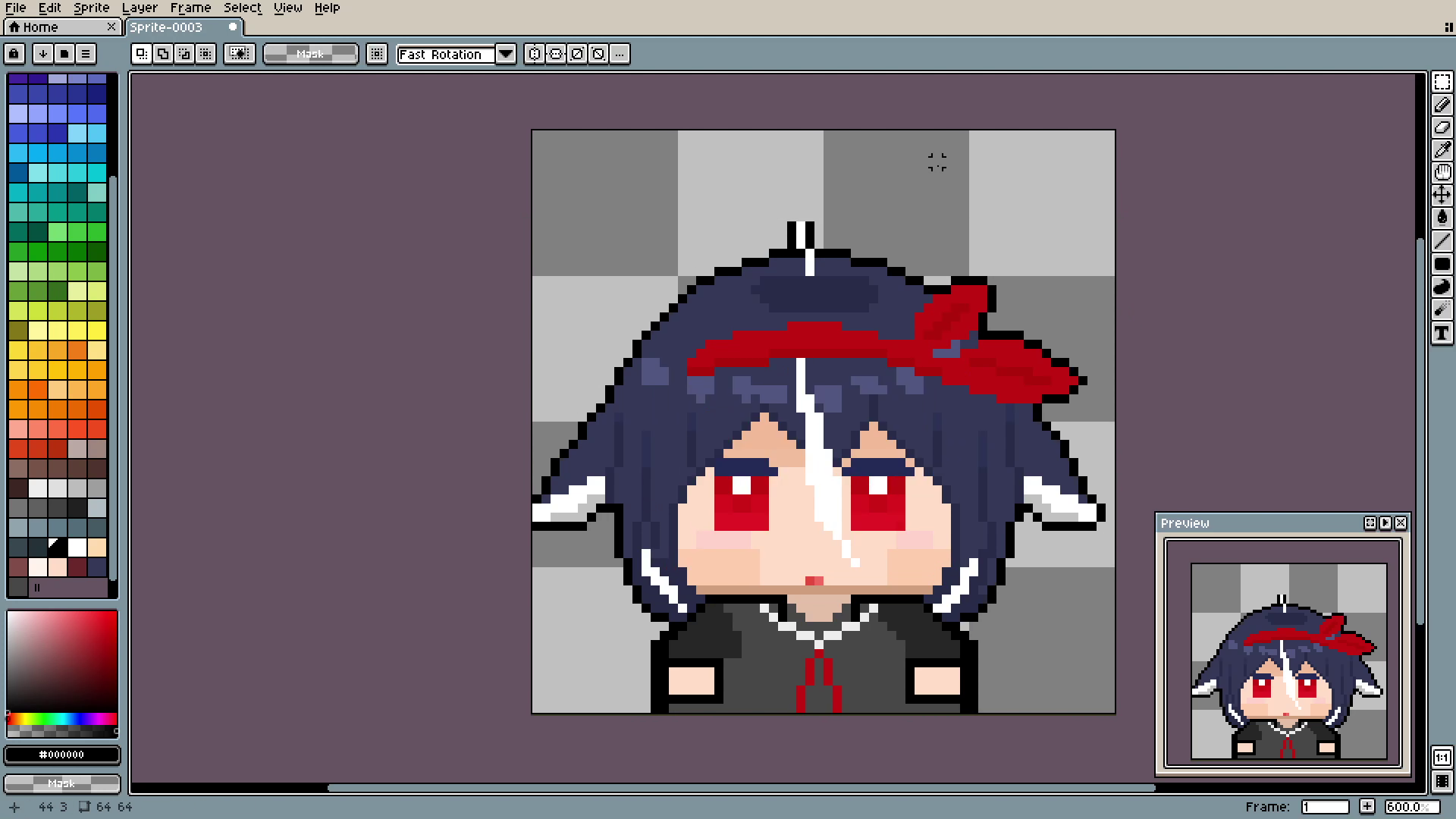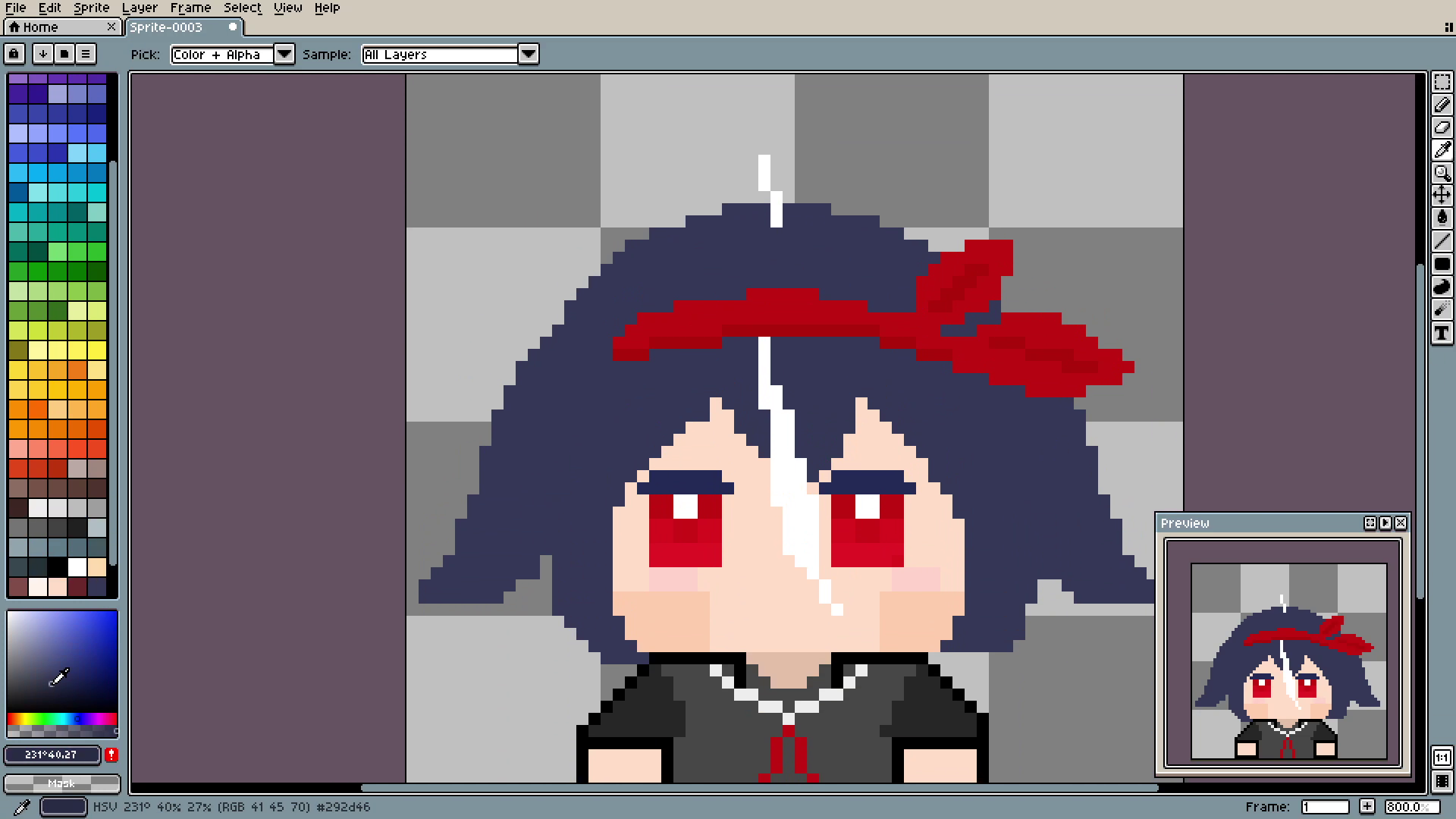 And the outline. See? In 3 simple steps we went from plain spot to decent-looking hair. By the way, if you are using Aseprite like me, you can auto-outline things using shift+o.