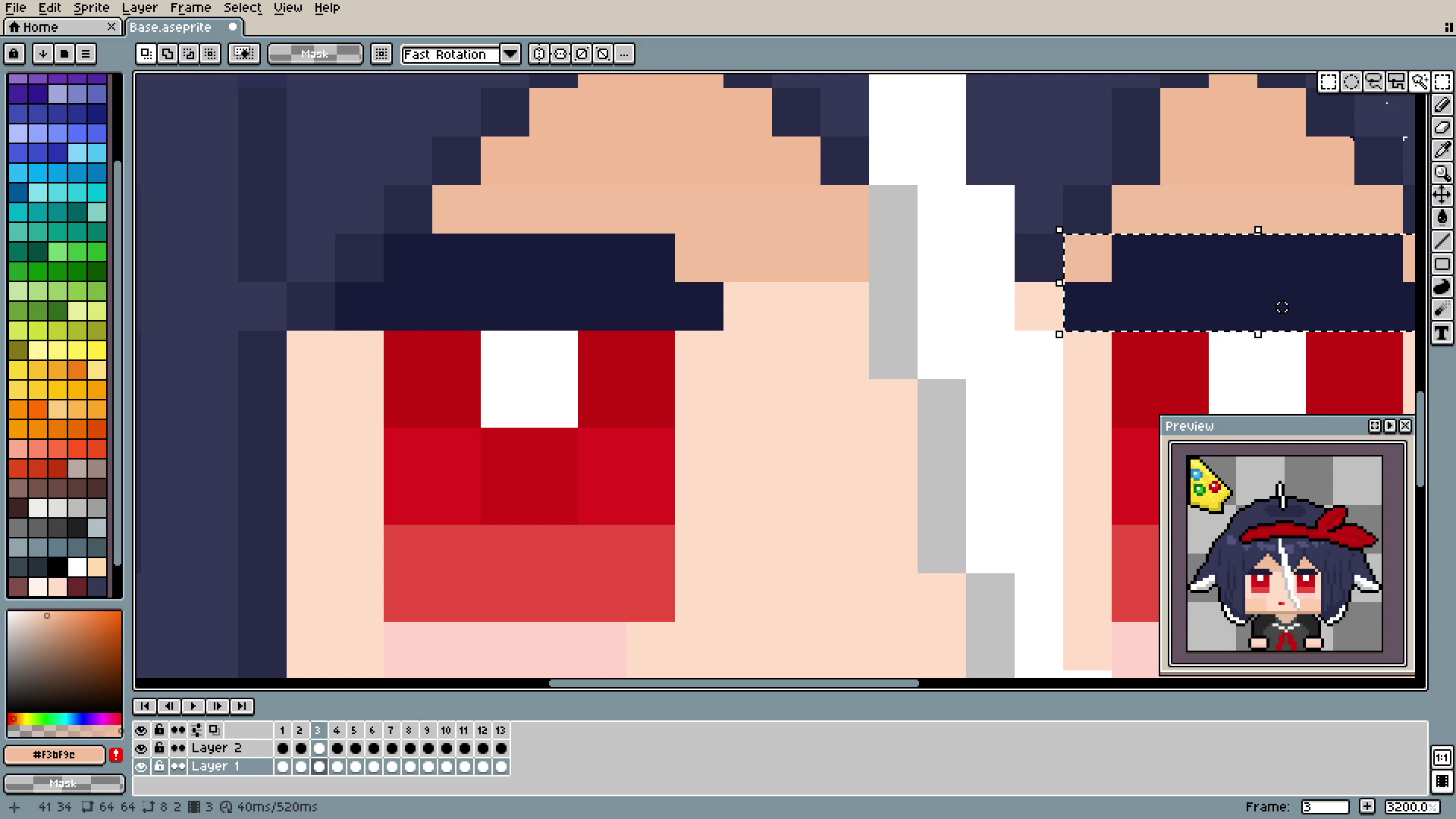 The flaps and head animations were made by simply moving parts up and down and filling the gaps. Starting, I was overthinking this immensely, trying to find the perfect place to move. But in the end, on a 64x64 canvas, movement is so minimal, it's barely noticeable.
