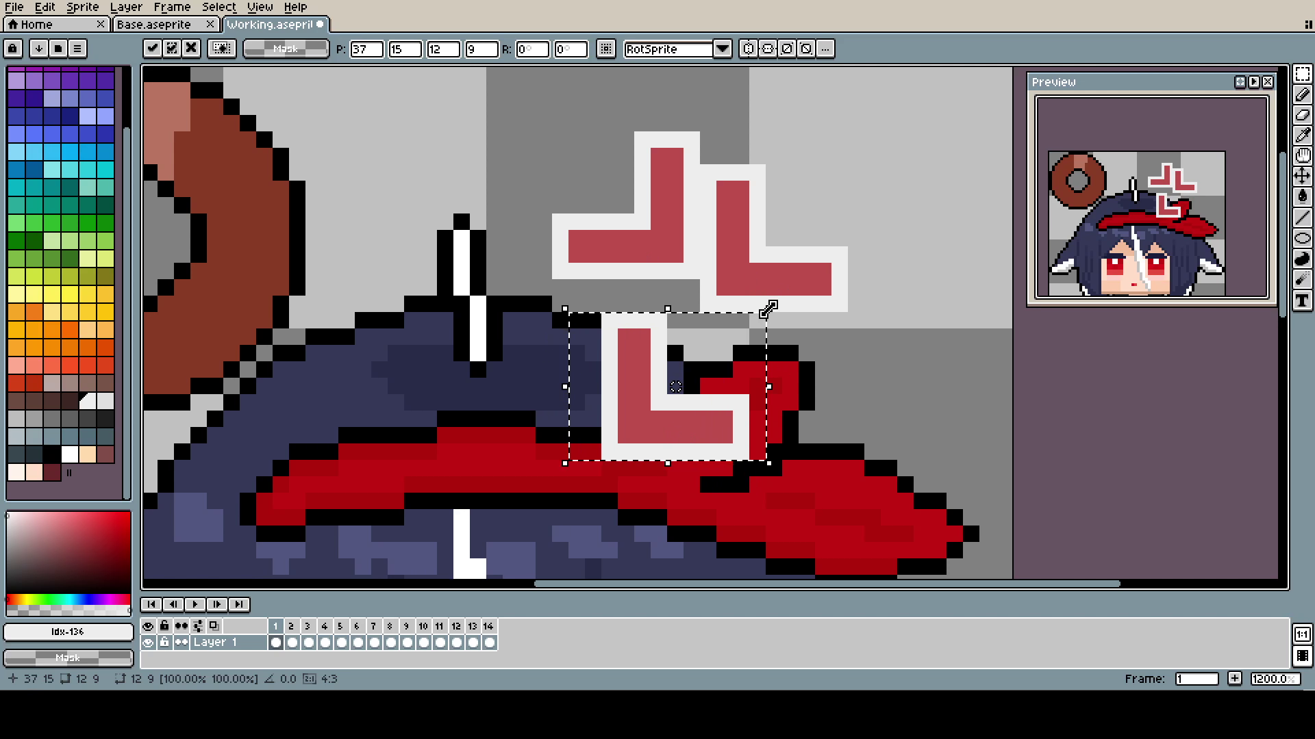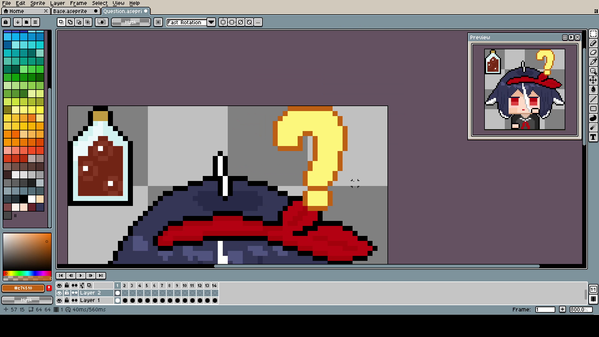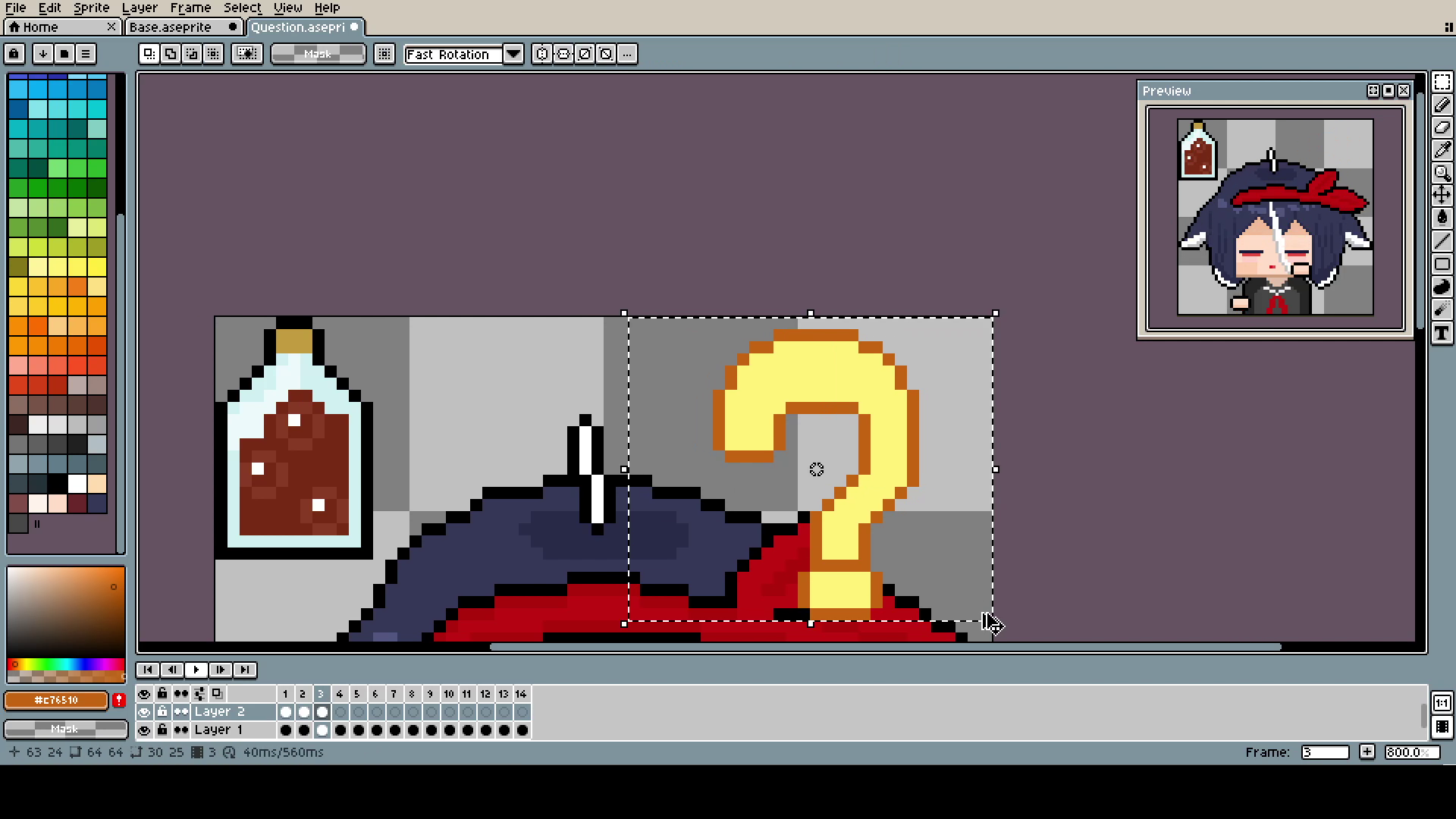 The question mark was done by simply shrinking and expanding it with the Marquee Tool. Maybe it's not the most professional approach, and you could make better-looking animation by changing it pixel by pixel, but I was kinda on a time limit, and it looks good enough.