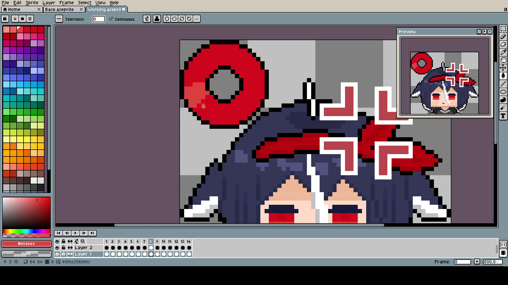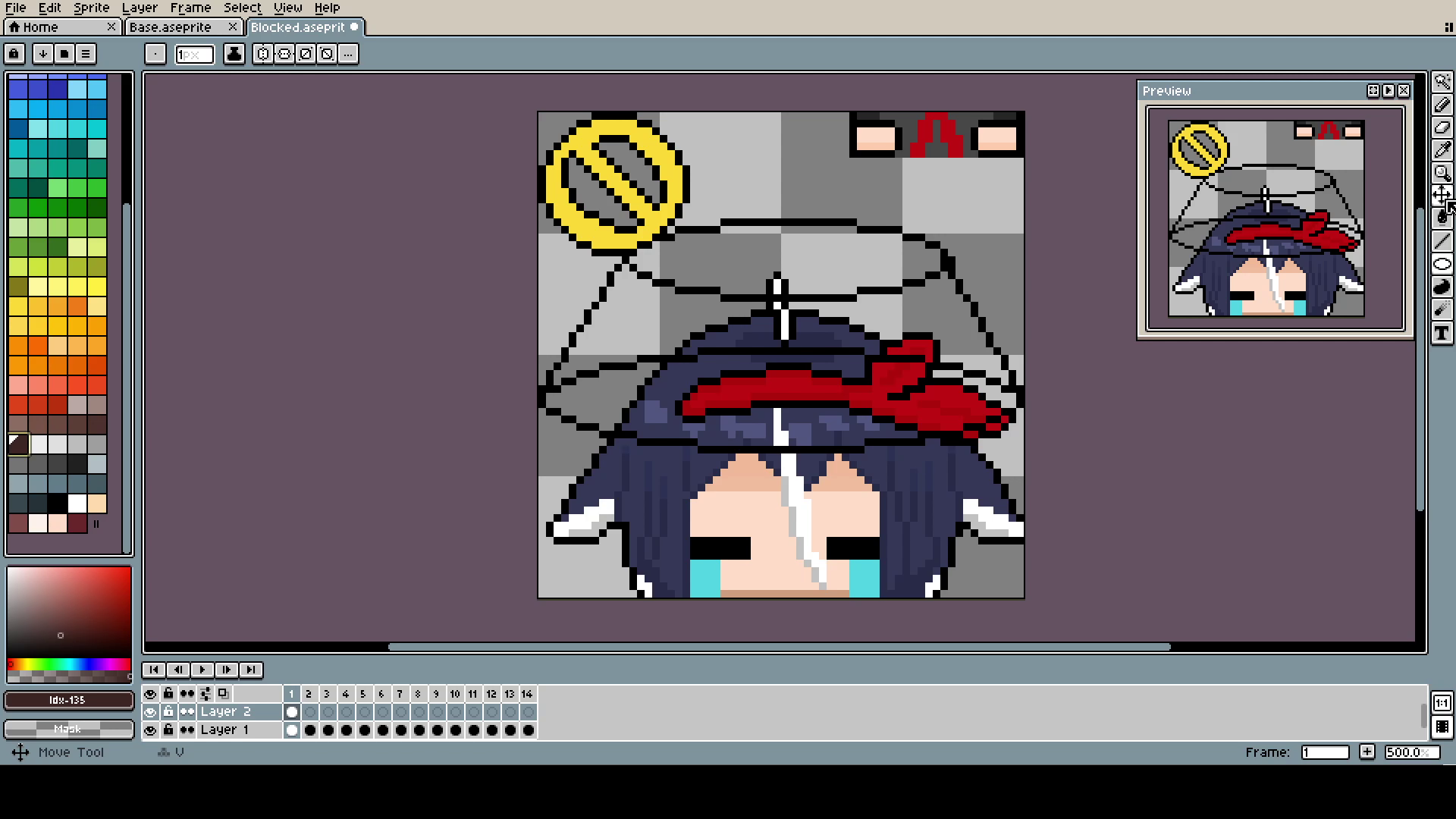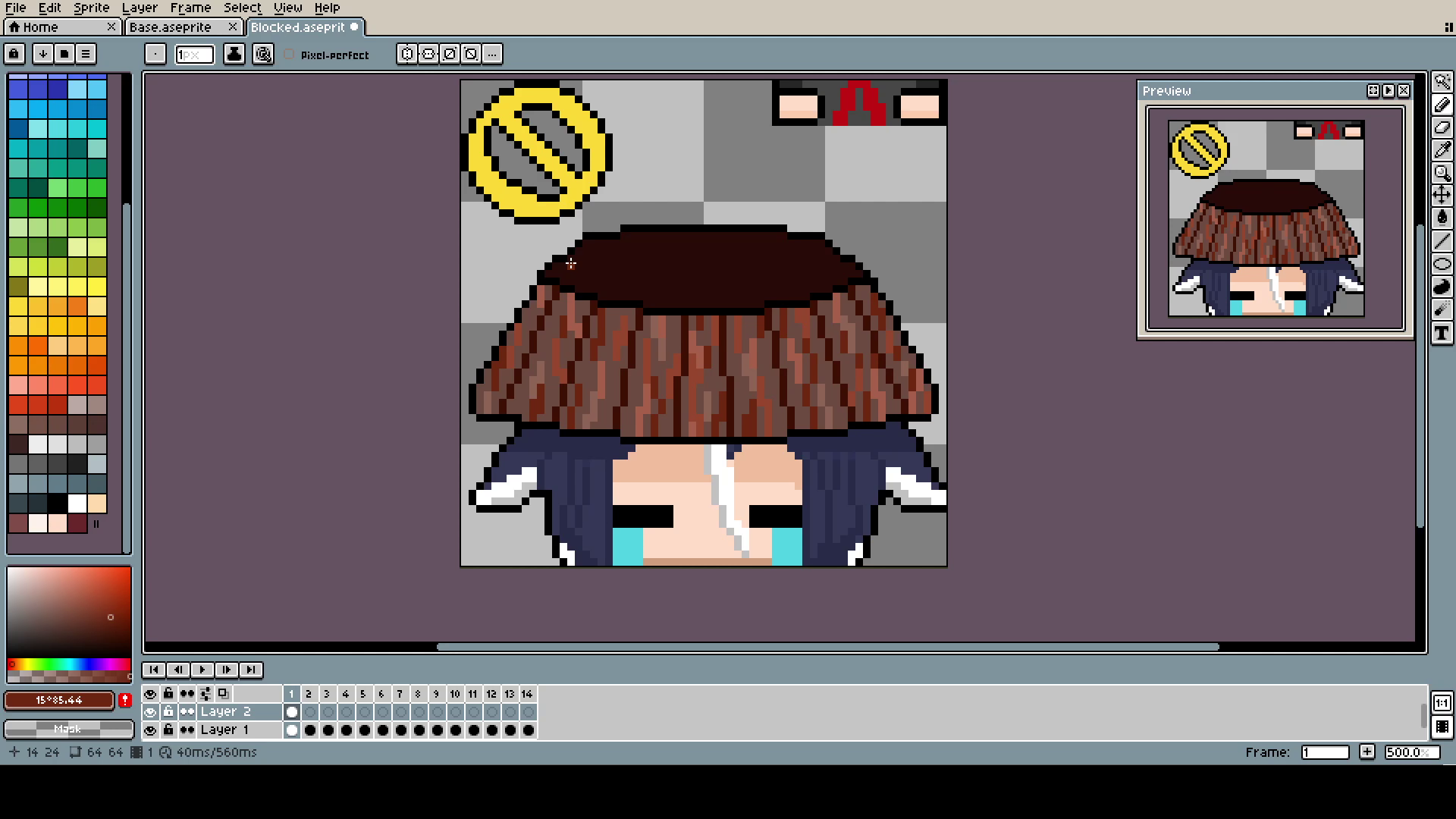 The Bucket (yes, capital B) is, of course, in a different layer than the head. Even if, in the end, they move together, it was much easier to pixel and adjust.