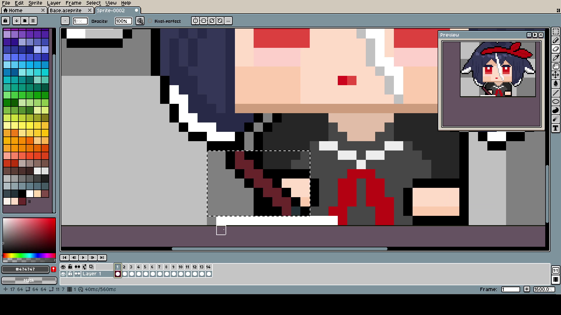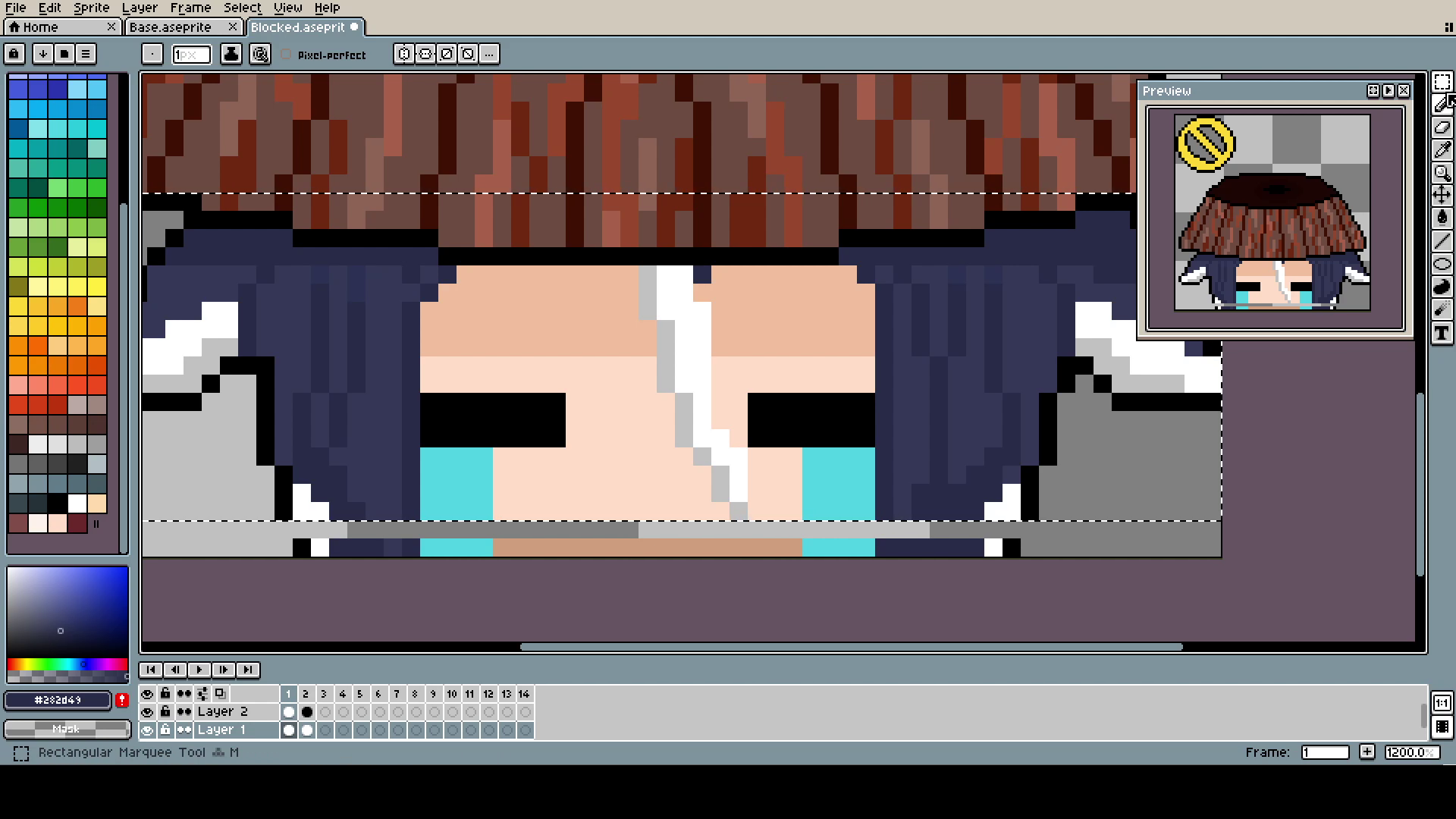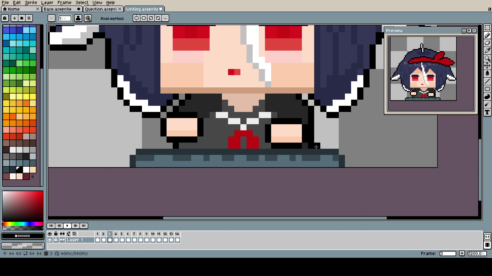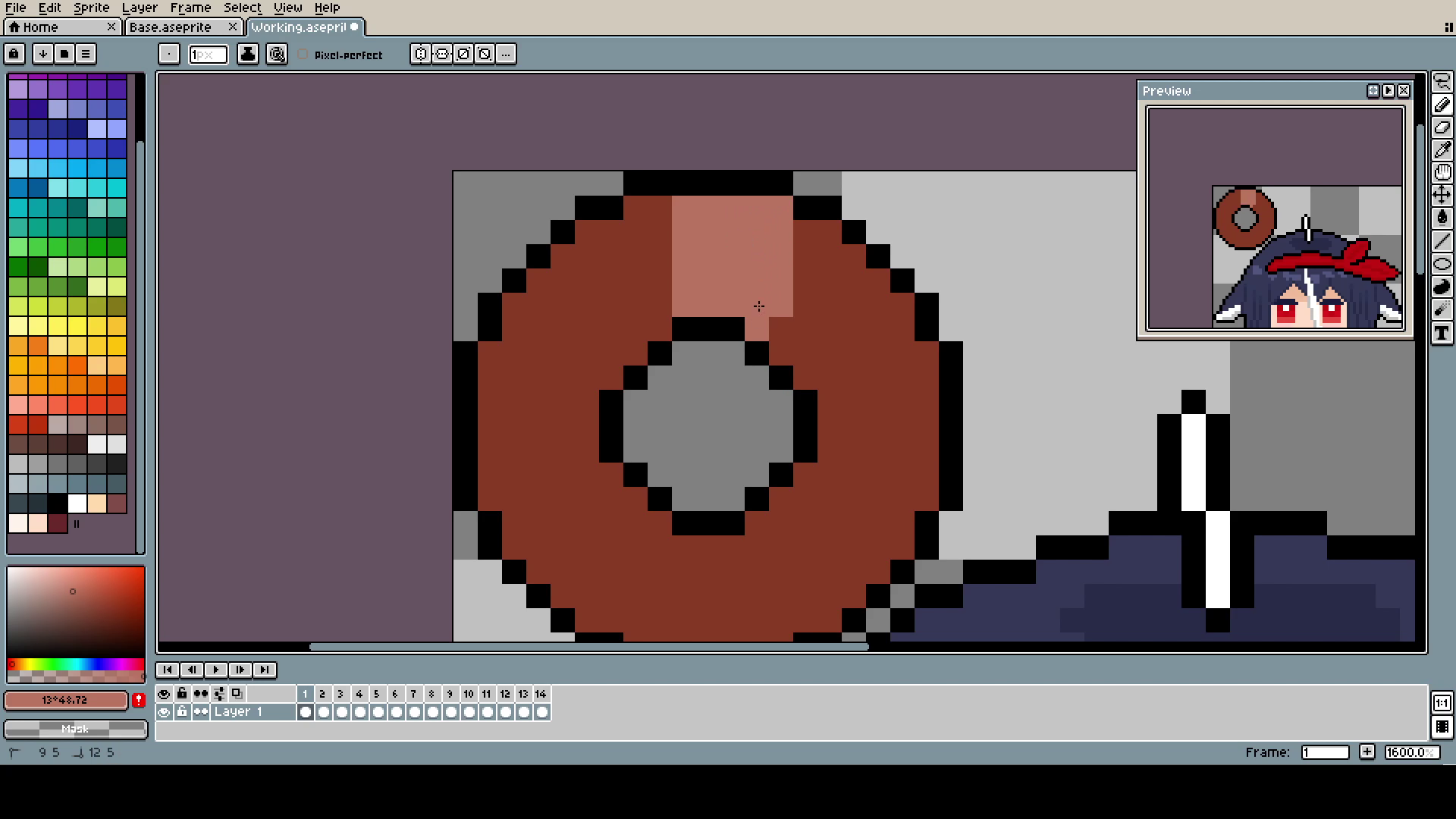 The Bucket (yes, capital B) is, of course, in a different layer than the head. Even if, in the end, they move together, it was much easier to pixel and adjust.