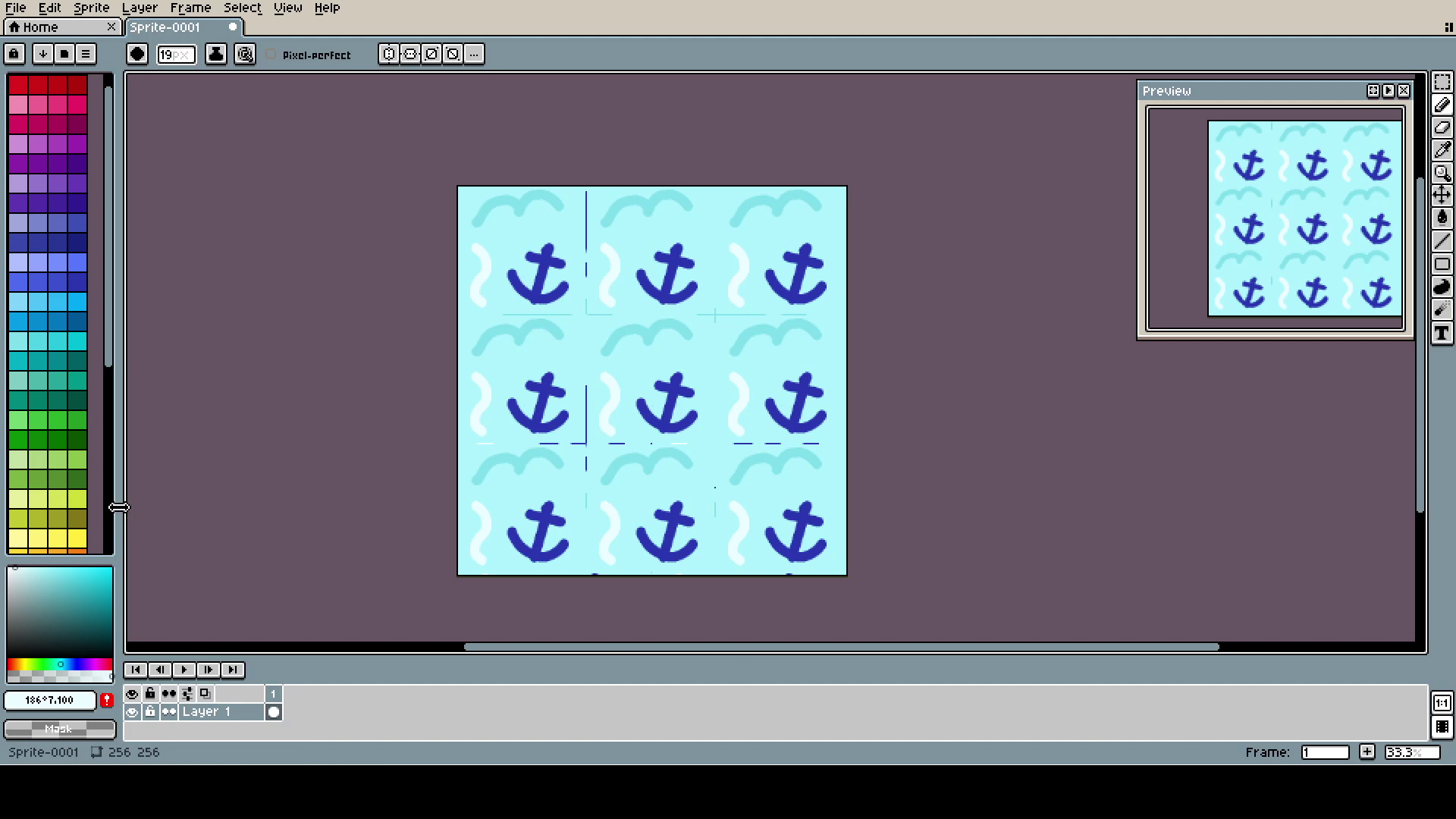 The background is simply one 64x64 pixel, copied 9 times on a 256x256 canvas. Remember that pixels scale by fours, not by twos.