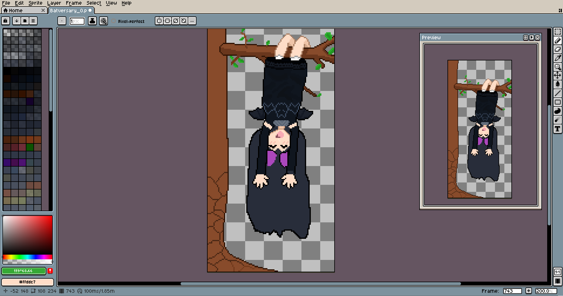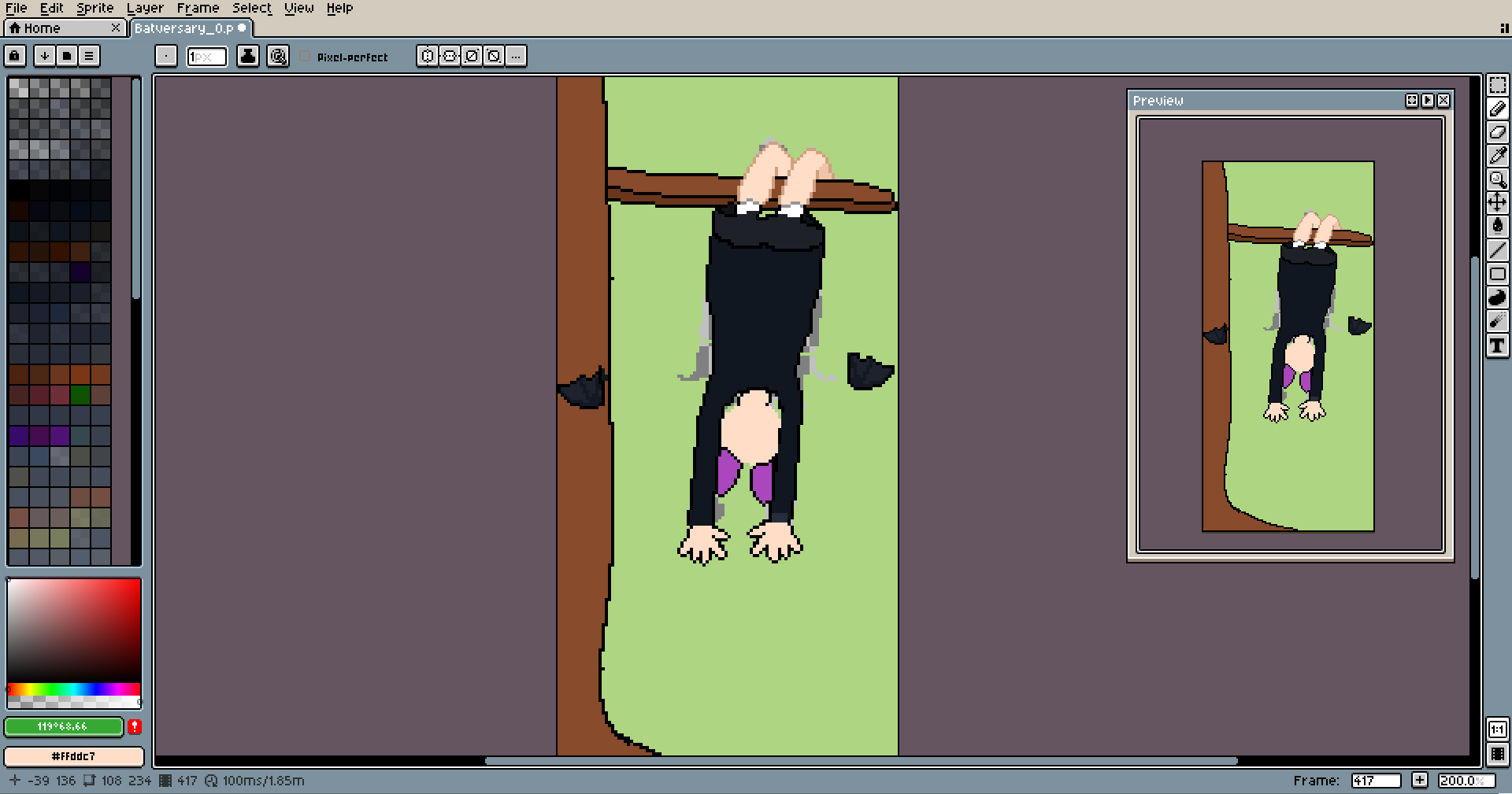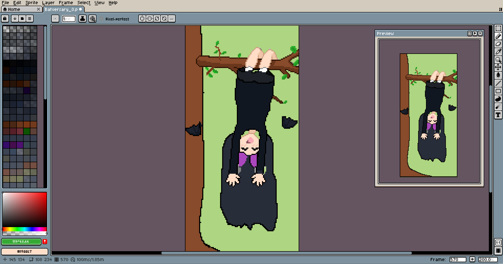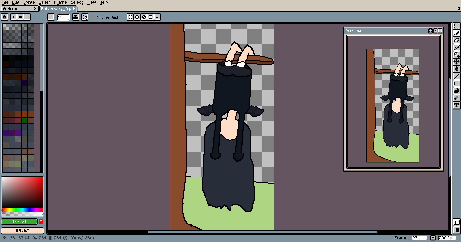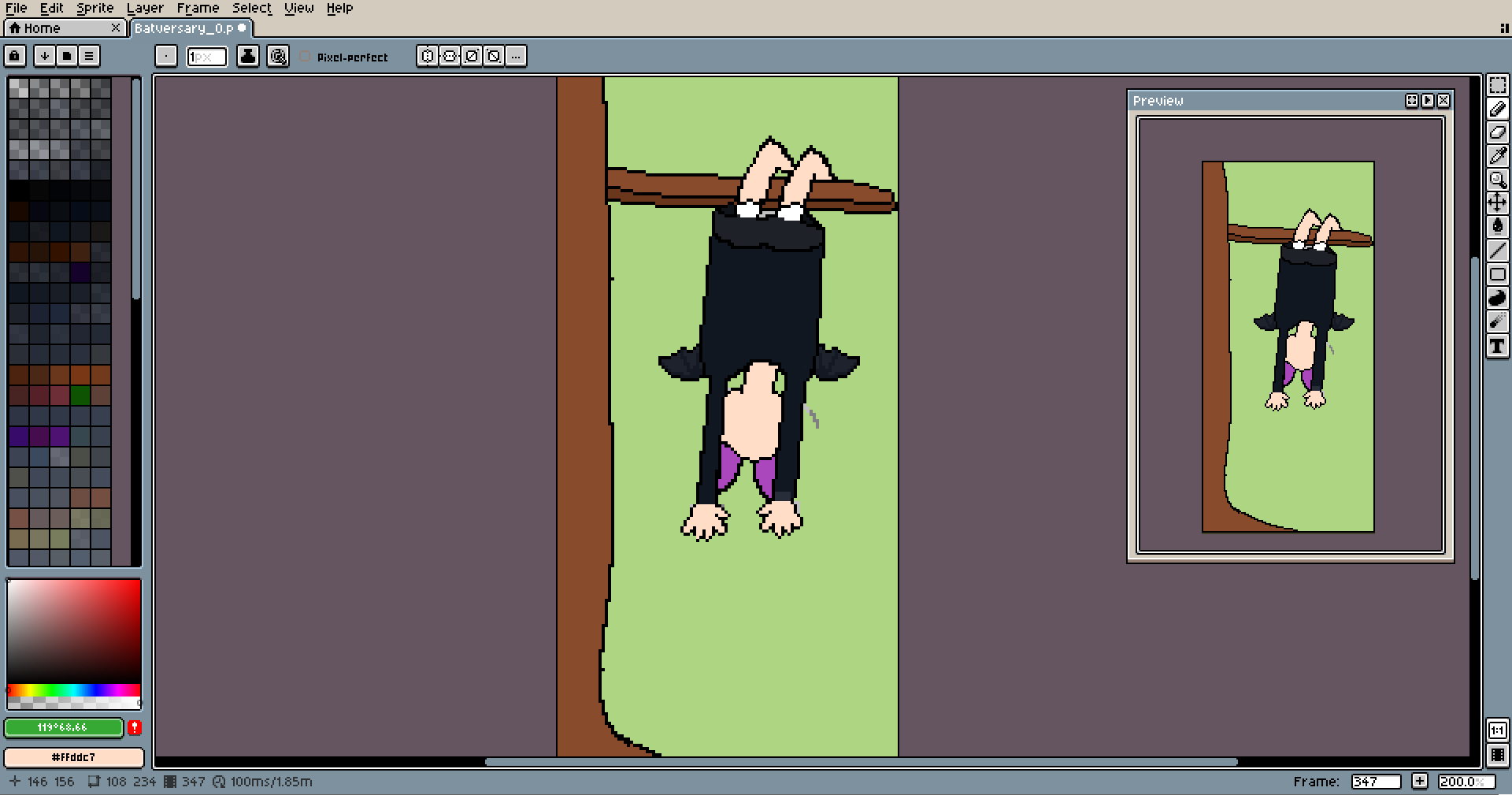 If you work on something upside down, you can rotate the canvas using the Sprite menu, it's helpful too.