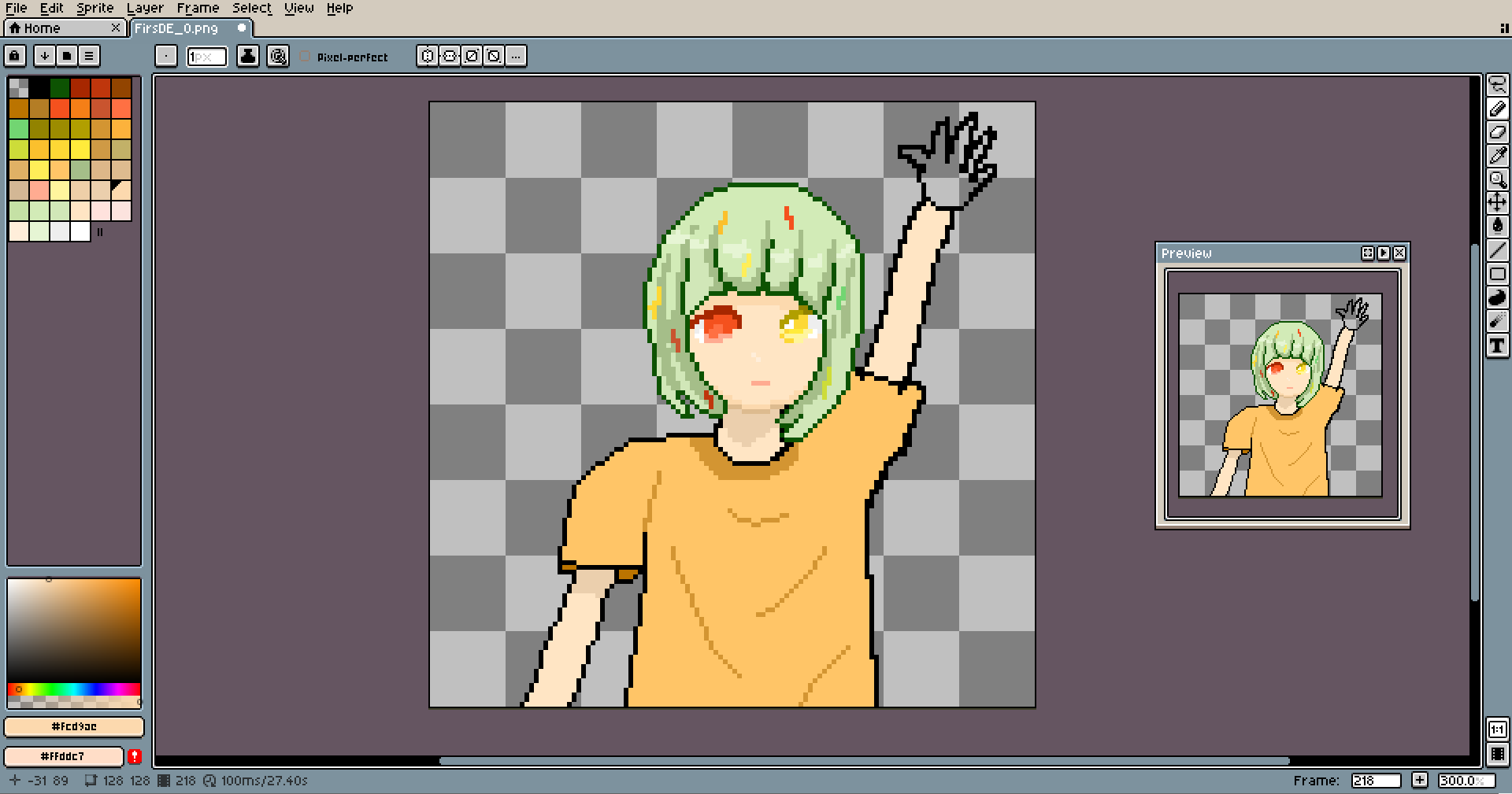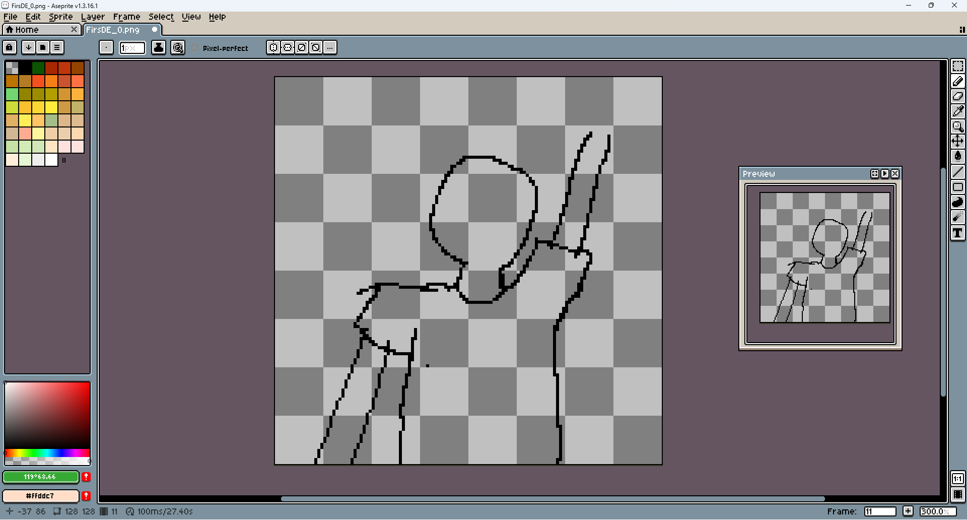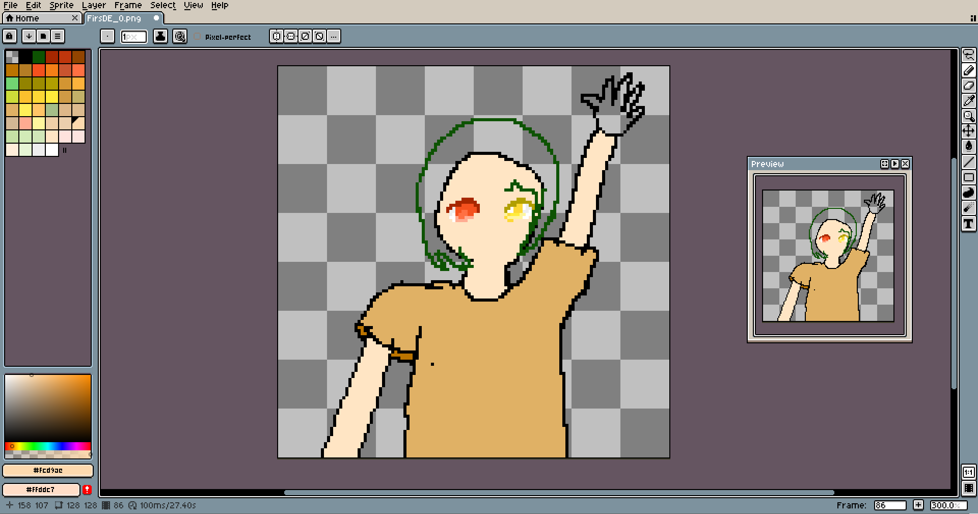This pixel is special. It's the first-ever piece I made entirely on my tablet with a pen. I wanted to start practicing it long ago, and I even tried... like a dozen times, but always stopped after a few lines. It's totally different from pixeling using the mouse. It's much easier to make long lines look good, and things like shading come much more naturally. But loss in precision is huge, and losing easy access to keybinds is slowing down the work a lot.