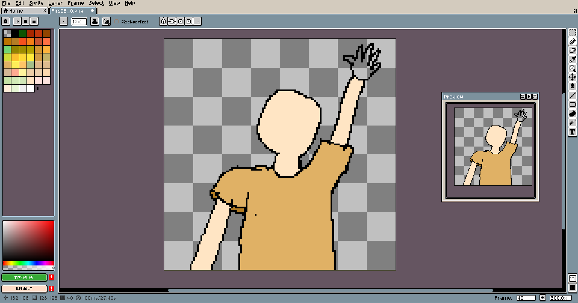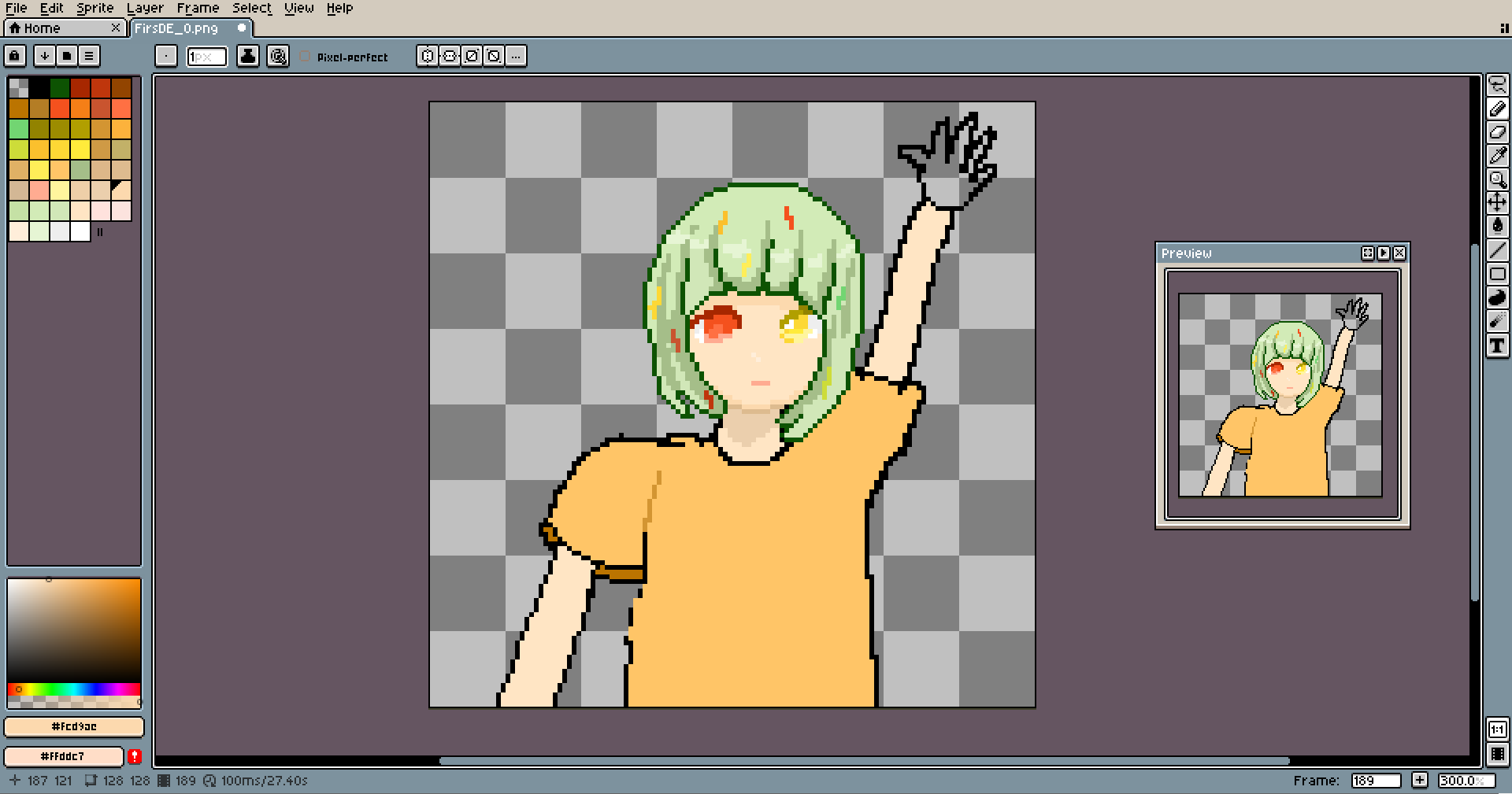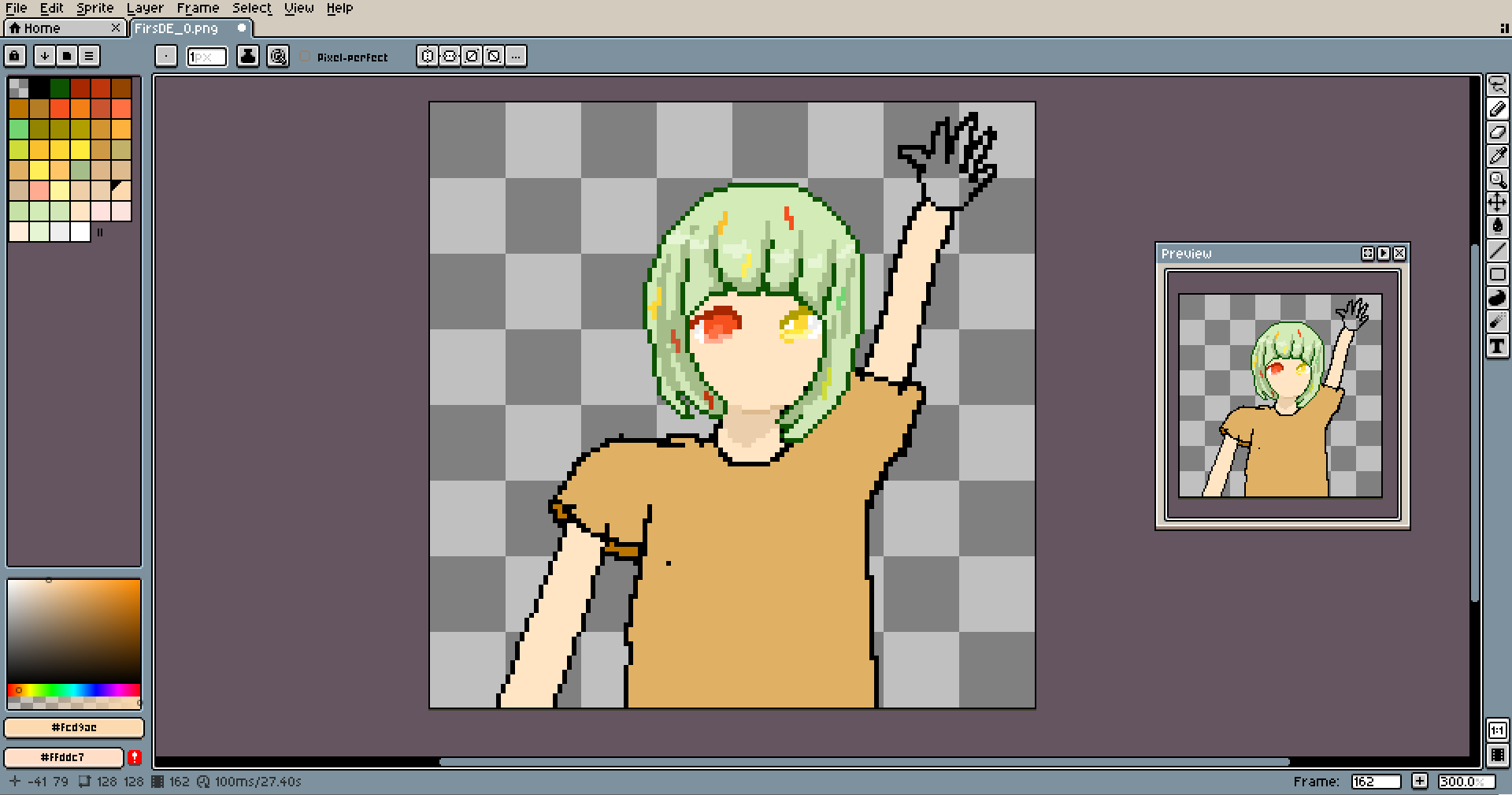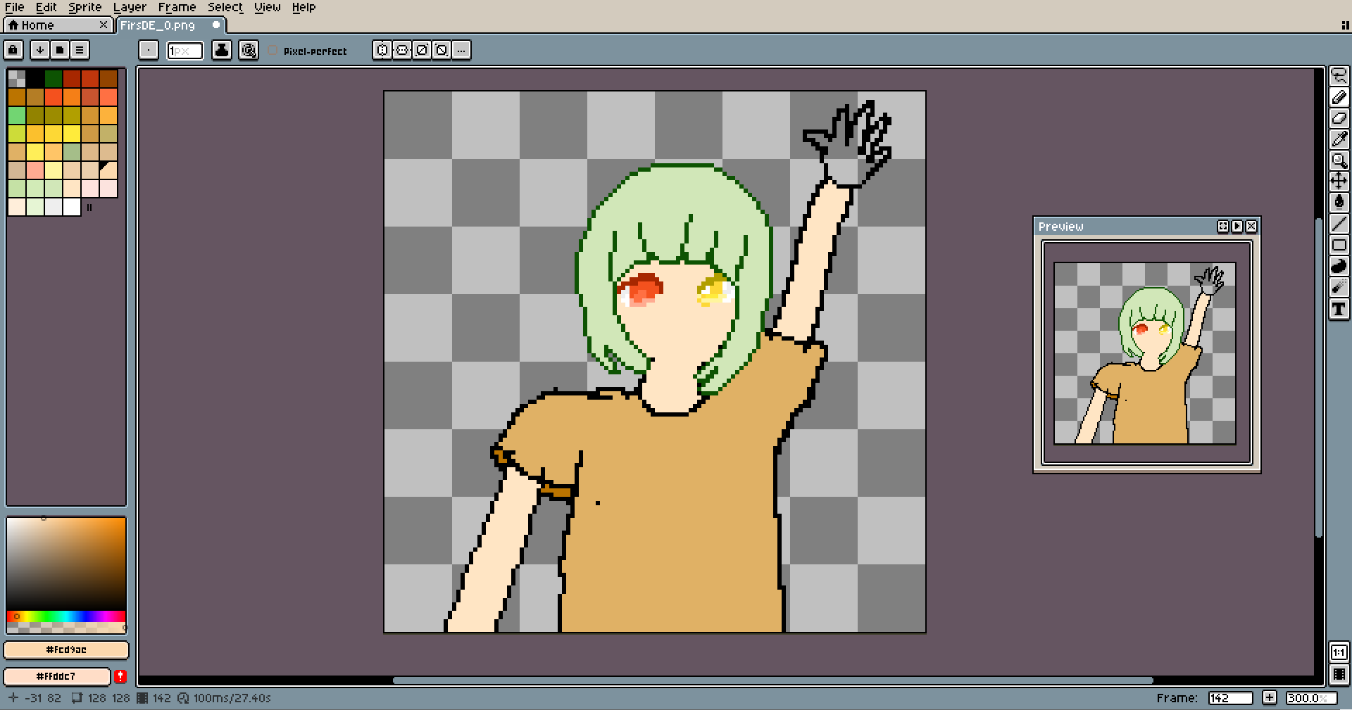 This pixel is special. It's the first-ever piece I made entirely on my tablet with a pen. I wanted to start practicing it long ago, and I even tried... like a dozen times, but always stopped after a few lines. It's totally different from pixeling using the mouse. It's much easier to make long lines look good, and things like shading come much more naturally. But loss in precision is huge, and losing easy access to keybinds is slowing down the work a lot.